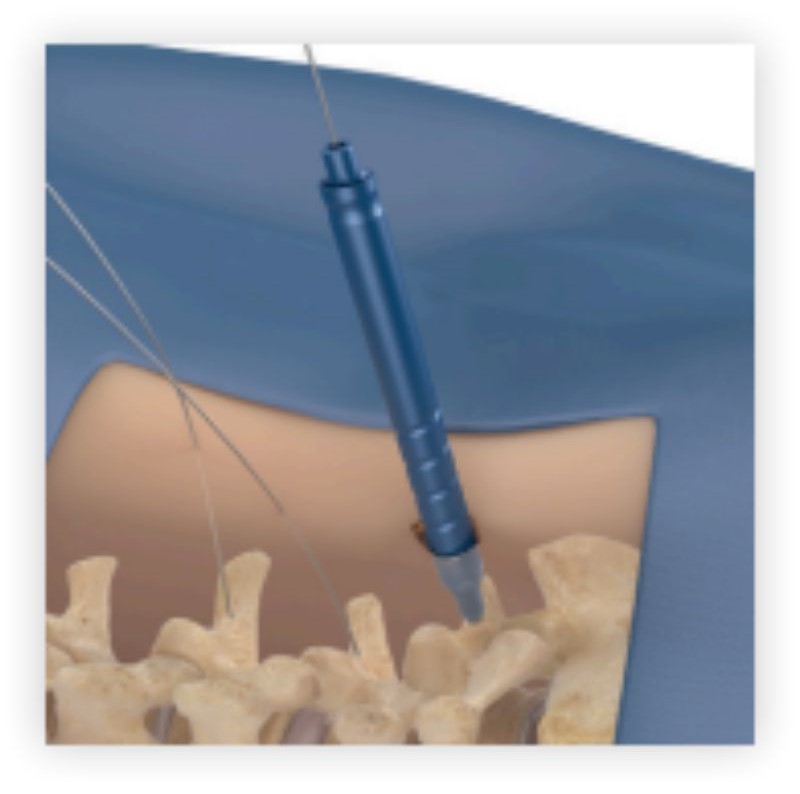 For a single level TLIF procedure, which involves one intervertebral disc and the spinal bones, or vertebrae, above and below it, an incision is made on the side of the lower back where the diseased disc is located, and two small incisions are made on the opposite side. A device, called a fluoroscope, that projects live x-ray images onto a screen is typically used to help pinpoint the exact positions on the spine where the instruments will go. Next, thin metal wires designed to help guide the instruments are inserted into each incision through tissues and muscle to the bones of the spine where the retractor will dock (on the side of the diseased disc) and to the bones where screws will be inserted (on the opposite side). Special instruments (dilators) are guided down the wires to separate muscle fibers and provide access to the underlying spinal bones. After the initial dilators are docked on the back of the spine, larger dilators are added, gradually increasing the diameter of the incision area to allow enough room for the instruments to pass.